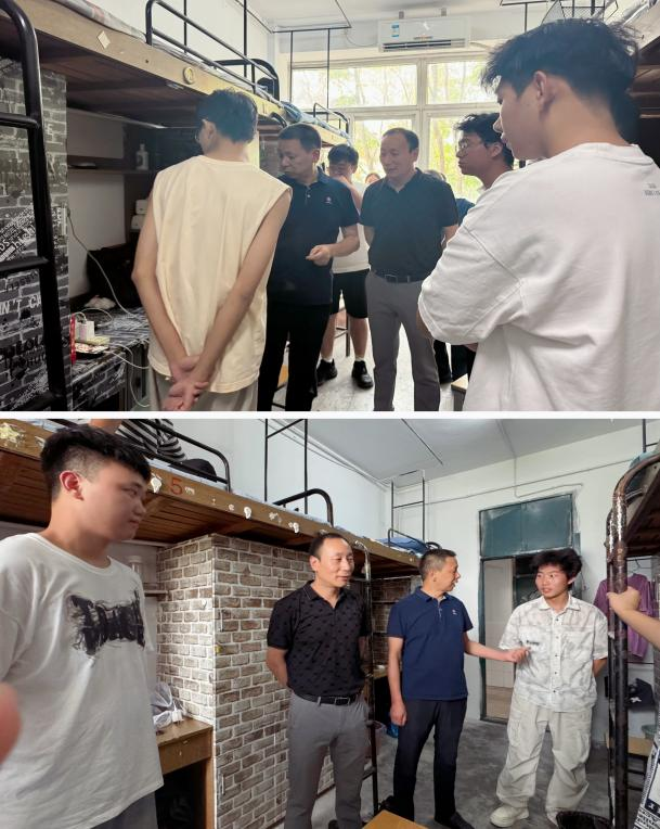 “家乡是哪里的?”“对学校的饮食还习惯吗?”“生活上有没有什么困难?”每到一个宿舍,领导们都与新生及家长进行亲切交谈,细致地询问他们的入住感受和适应情况,耐心解答家长们关于专业发展、学业规划等方面的疑问。勉励新生要尽快转变角色,适应大学的学习和生活节奏,珍惜时光,勤奋学习,团结同学,做好人生规划。句句关切的话语让远离家乡的学子们感受到了第一版主 大家庭的温暖,也消除了家长们的后顾之忧。