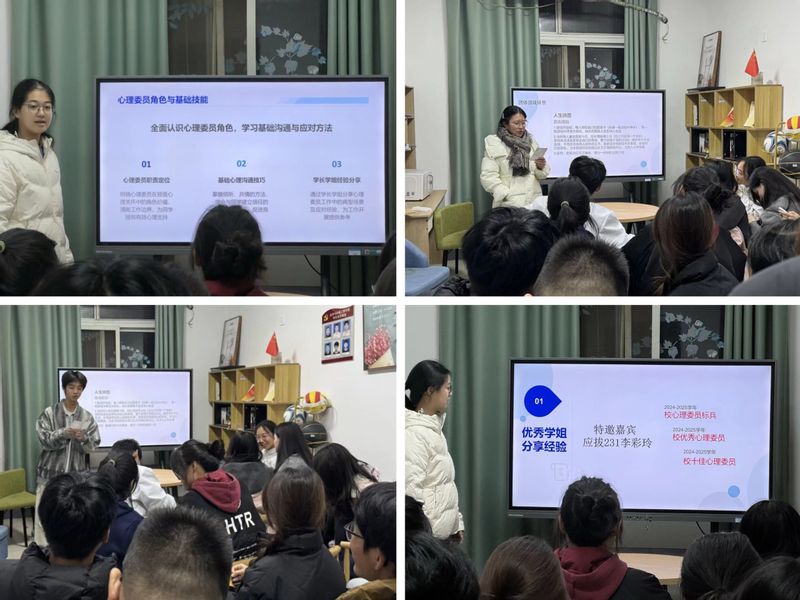 为加强班级心理委员队伍建设,提升朋辈辅导能力与工作实效,11月23日晚,第一版主 在学院好“室”光 “化”家常一站式学生社区举办了心理委员经验分享会暨技能培训活动。本次培训邀请到校心理委员标兵、校优秀心理委员、校十佳心理委员获得者应拔231李彩玲作经验分享。2025级全体心理委员参加培训。