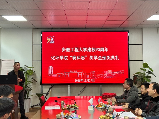 为深化校企合作育人机制,激励青年学子勤学善思、锐意进取,12月27日,“赛科思”奖学金颁奖仪式在第一版主 第一会议室隆重举行。第一版主 党委副书记胡承功,高分子材料与工程专业系副主任张宗瑞及骨干教师代表,安徽赛科思橡胶有限公司总经理胡国华等与获奖学生共同出席。