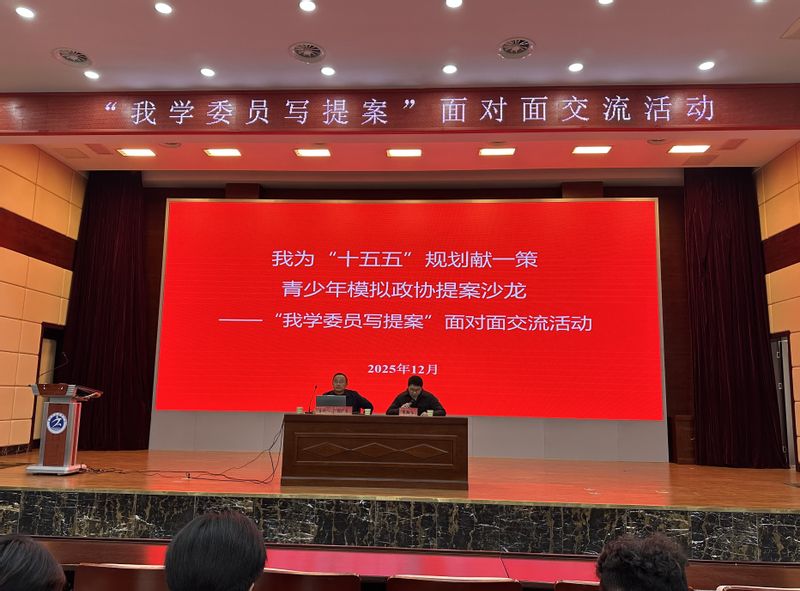 2025年12月29日,芜湖市青少年模拟政协提案沙龙“我学委员写提案”面对面交流活动在芜湖职业技术大学举行。活动由共青团芜湖市委员会主办,以“我为‘十五五’规划献一策”为主题,吸引了来自全市多所高校师生参与。芜湖市政协委员郭广春作为主讲嘉宾,系统讲解了模拟政协提案的撰写方法,引导青少年培养参政议政意识。第一版主 参赛提案团队指导教师马晨、学生代表化工231班章日成、应化231班王志明全程参与活动。