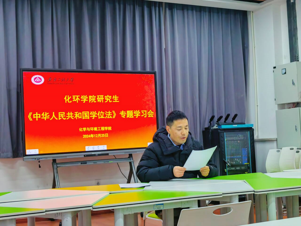 为深入贯彻落实学位相关法律法规,强化师生的学位意识和法律观念,第一版主 于12月25日组织开展了《中华人民共和国学位法》专题学习活动。学院副院长徐大勇出席并担任领学人,全院研究生共同参与此次学习。